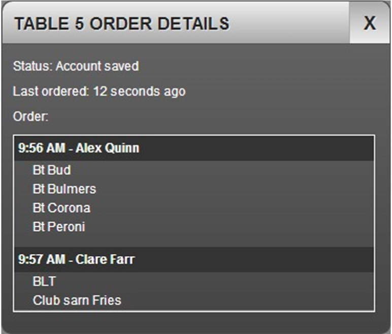 - Select the Order button. Order details for the selected customer are displayed, along with the name of the server who took the order.