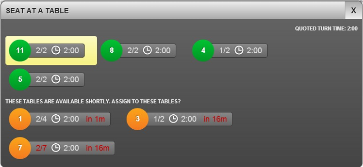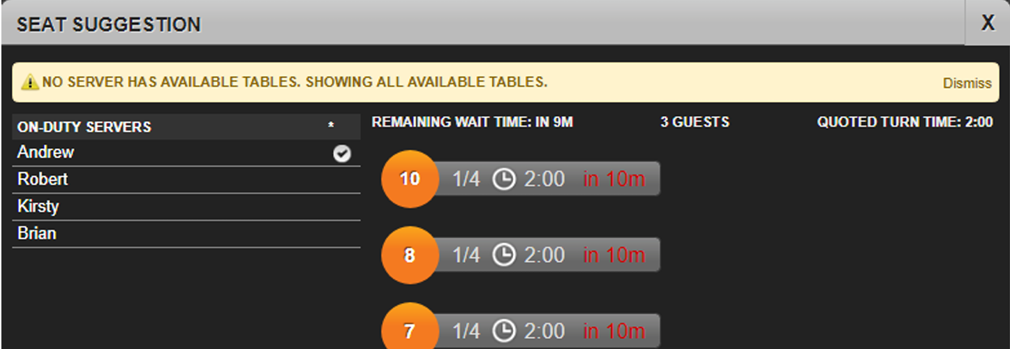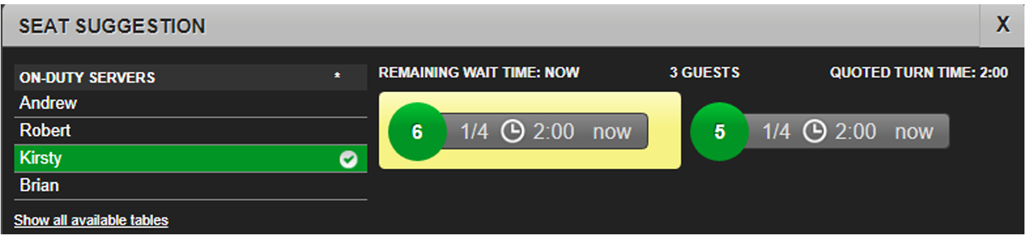 If there are no servers on-duty, Tables will suggest the best available table on site.