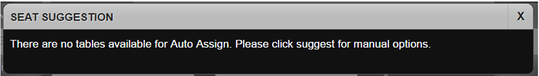 When adding a wait list customer, they are moved automatically to the Future Seating list on the table plan. If a suitable table cannot assigned automatically, the following prompt is displayed and the customer is added to the wait list.