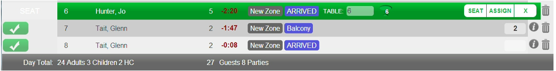 - You can perform actions on multiple rows at one time on both the Wait List and the Reservations tabs. Click or touch on the left above the footer, to give you an option to select All, None, or Selected guests, and do the same action to the selected guests.