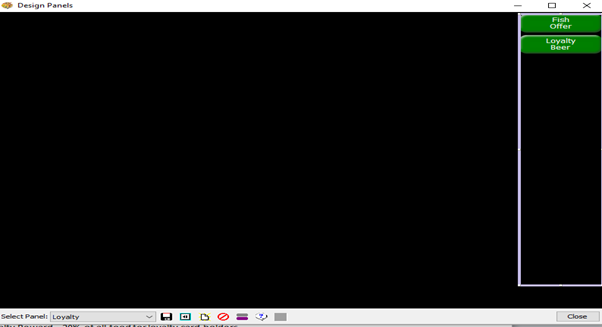The trigger button now needs to be added to the theme; this button should not be made visible on the till itself but should be hidden on a specific local panel as below: