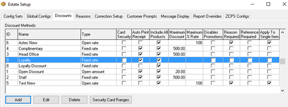 Once Edit Discounts has been selected you will be able to choose the relevant loyalty discounts for this site.