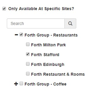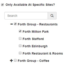 To apply to specific sites, click the Only Available at Specific Sites check-box and then select the site(s) from the estate structure.