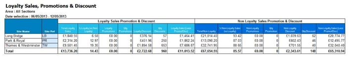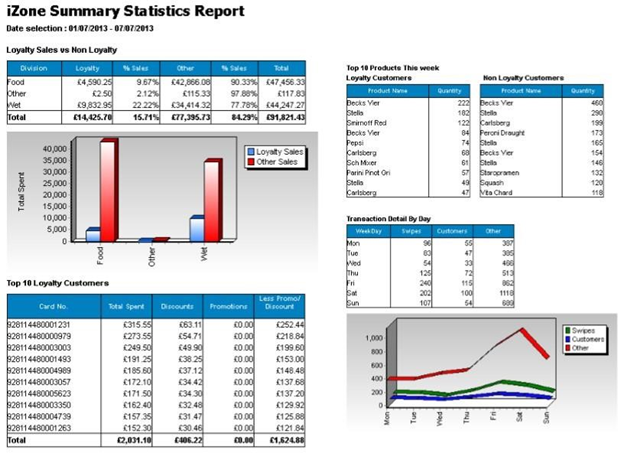 Three very flexible loyalty reports are available, with the level of reporting information needed easily definable by the user. Users can define the terms on which report information is searched and define the report fields that are displayed.