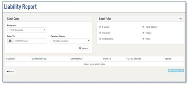 Liability Report- this report provides information on the current loyalty liability for a chosen reward, up to and including the date on which the report is requested.