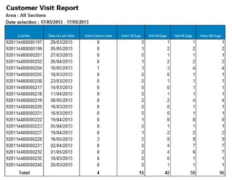 Shows indication of how successful your loyalty programme is by the visit counts