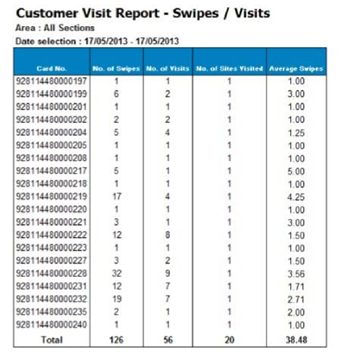 Customer Visit Report - Swipes / Visits