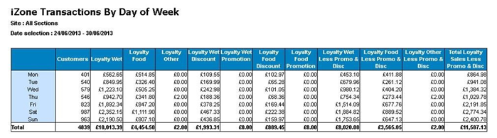 Loyalty sales by weekday