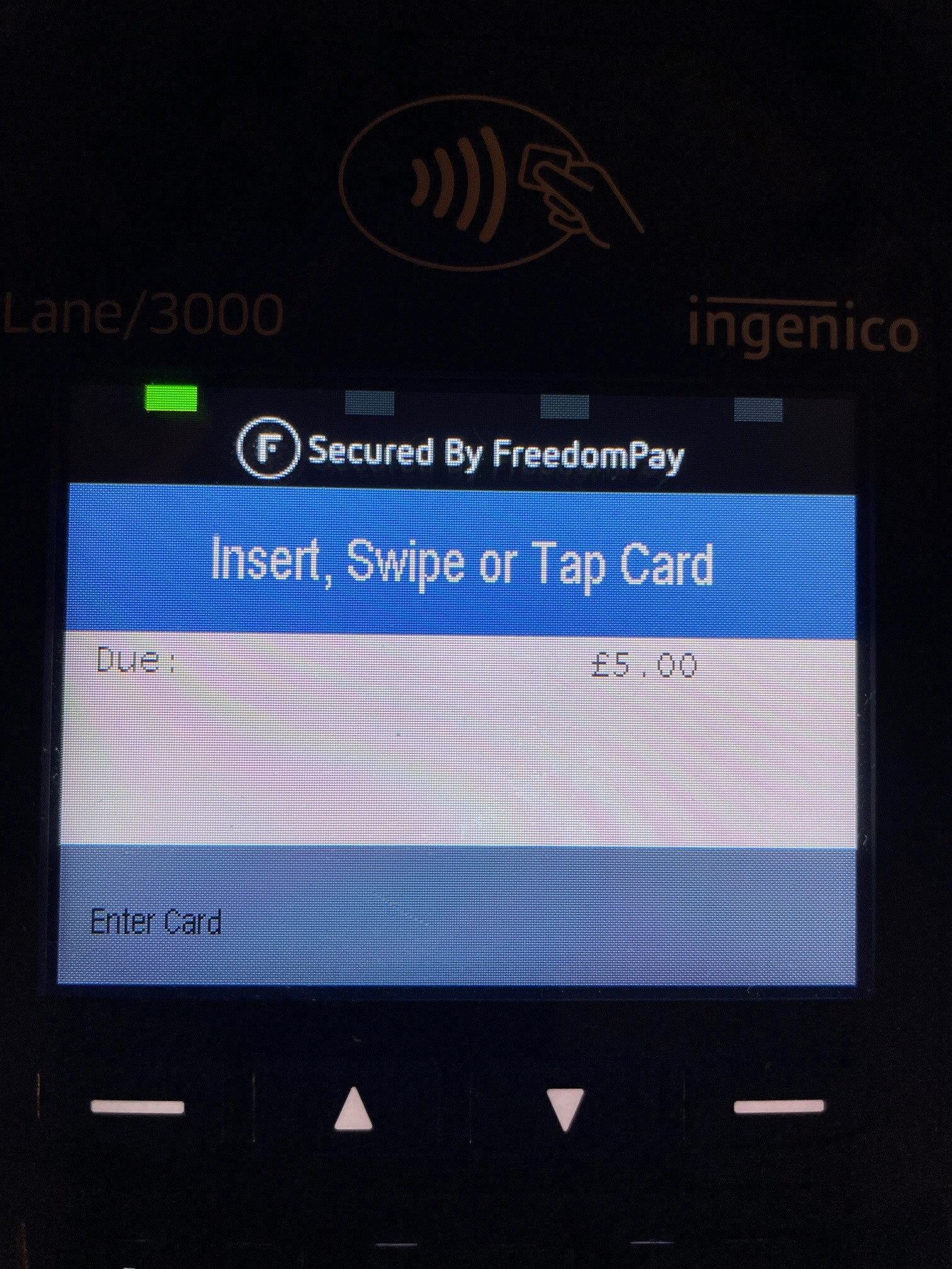 1. Process the transaction as normal, until you arrive at the below stage. Once here, select the button under Enter Card.