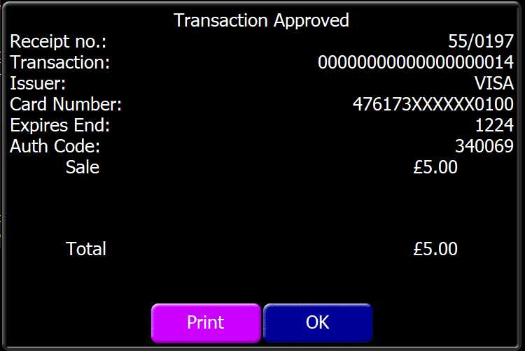 3. The POS will terminal now display the Signature OK screen, and the POS operator should Accept the signature.