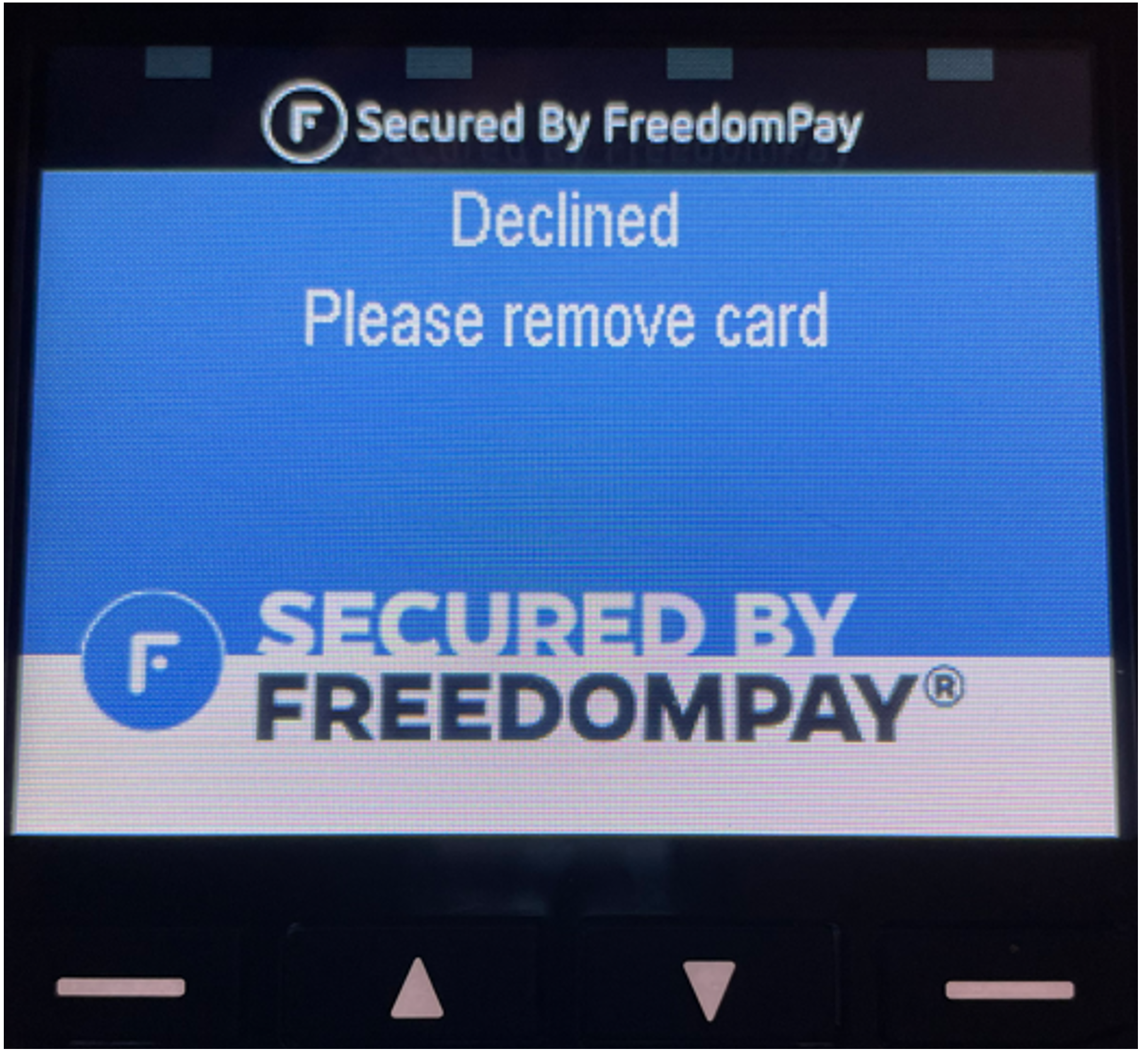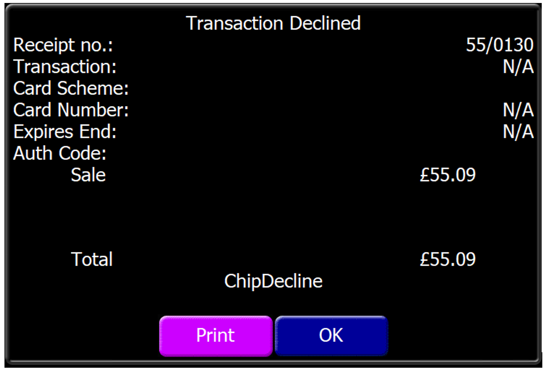 The POS terminal will display the Transaction Declined screen