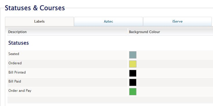 Login to Tables Brand Admin > Brand Setup > Manage Configurations > Edit Configurations > Status and Courses > Labels