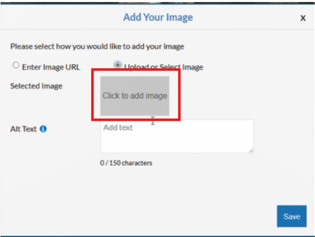 4. If uploading, select Click to add Image