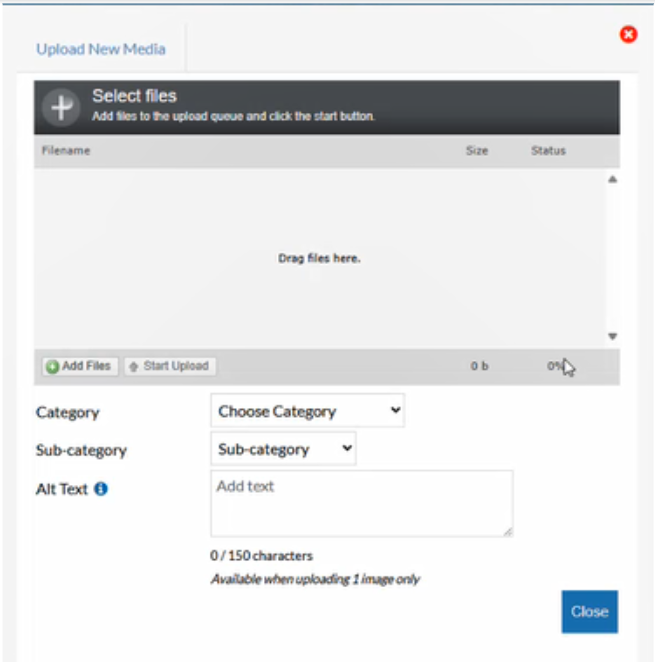 6. Select Add Files to browse for your image(s), or alternatively drag and drop your image(s) into the designated area.