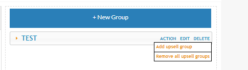 Clicking the 'Action' button in a menu group will offer two options; to add an upsell group to all products in the menu group or to remove all upsell groups from the products in the menu group.