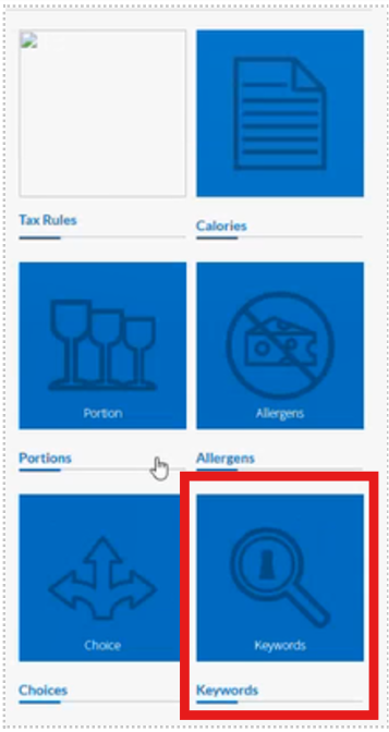The Keyword feature enables you to create a Keyword (e.g, "Gluten Free") and attach an icon to that Keyword.
