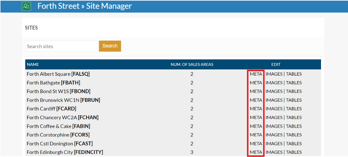 To be able to configure our sites, we would select Meta against the specific site we are configuring.