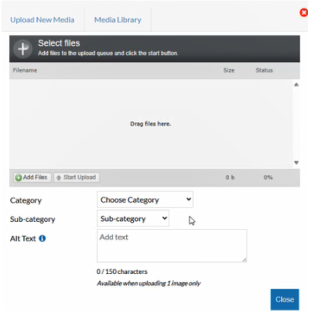 • Selecting Add Files on the next screen (below) will allow you to start an upload. Alternatively, we can select the Media Library tab at the top of that box.