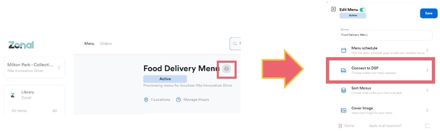 A menu needs publishing from Zonal Connect to make it available on a DSP. You can link a specific menu to each DSP if you have a different offering available for each.