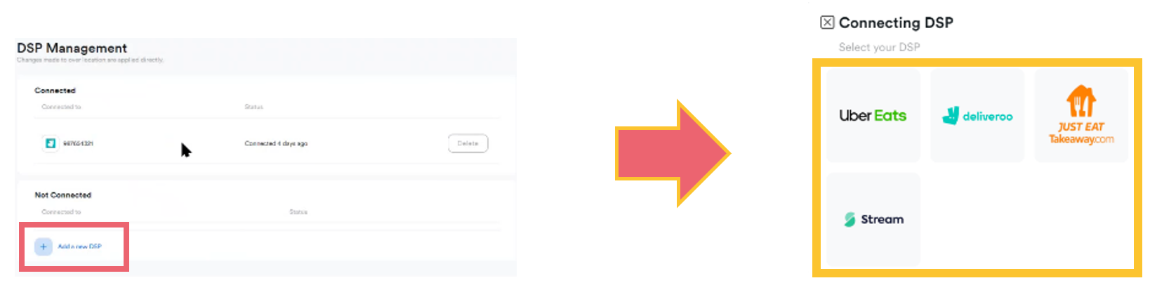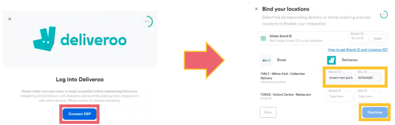 7. Next, select Connect DSP and enter your Brand ID and Location ID,