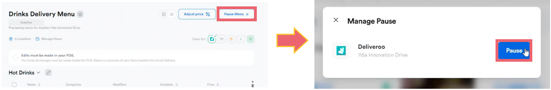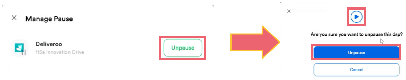 5. You can unpause the menu at any point by selecting Unpause which will override any previously selected duration and return the menu to being available to order from.