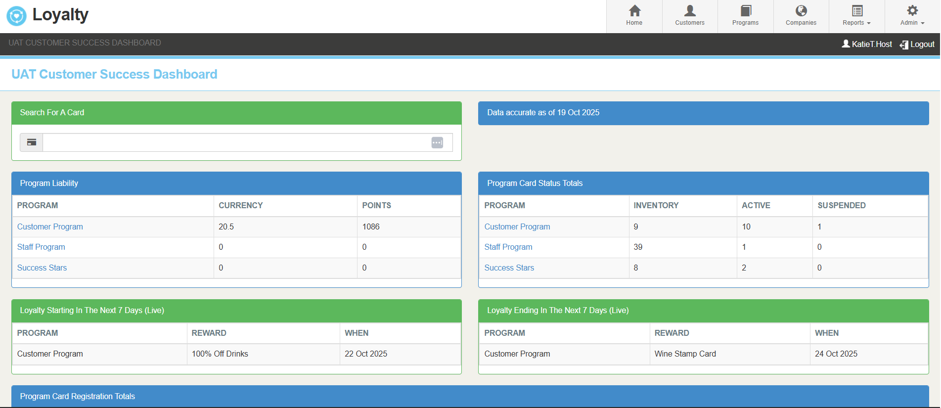 Track Trends Over Time – Program liability or card registration totals can help you monitor performance trends across days, weeks, or months