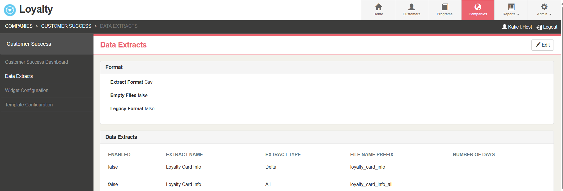 The Loyalty Card Info extract provides a list of all registered loyalty cards, grouped by company and the associated program each customer has joined.