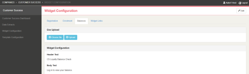Header and Body Text: Information displayed to customers on the Balance Widget on log in e (both fields are mandatory).