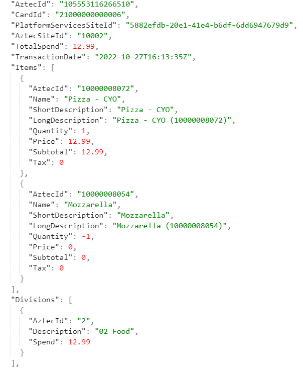 - Where the transaction occurred: AztecSiteId, PlatformServicesSiteId