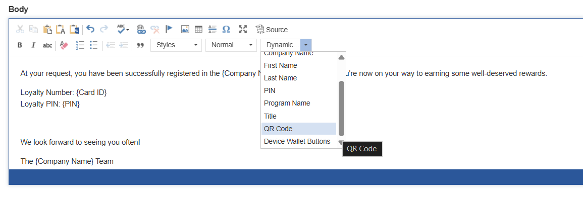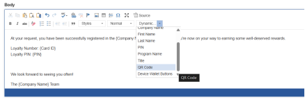 An optional additional step enables a QR code to be included within the welcome the guest receives when they register the loyalty card, this page describes the setup for including the QR code, more information on customising email templates is available here.