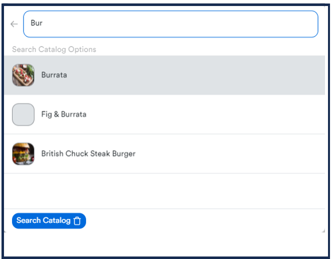 Catalogue search can be used to search for items on a menu that is active on the platform |