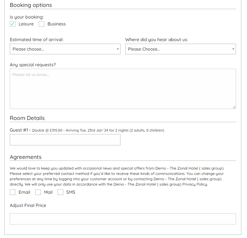 Mandatory fields are marked with an asterisk. However we recommend that you gather as much guest information as possible.