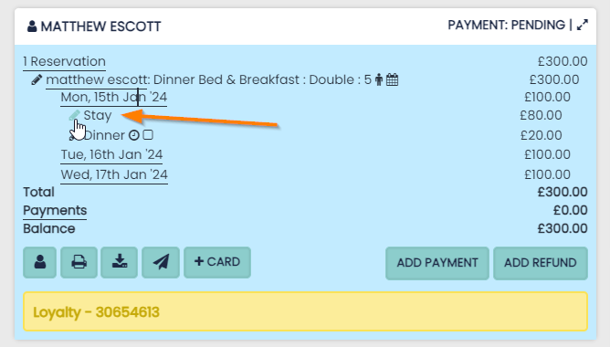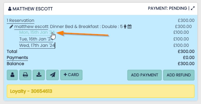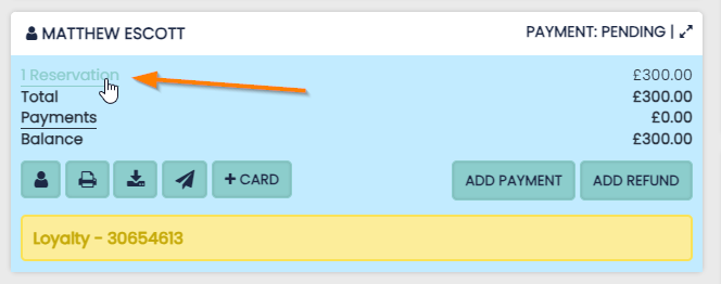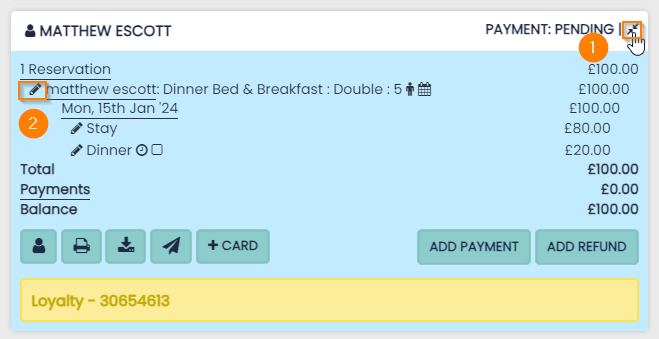 2 To amend a reservation select the pencil icon next to the name of the guest
