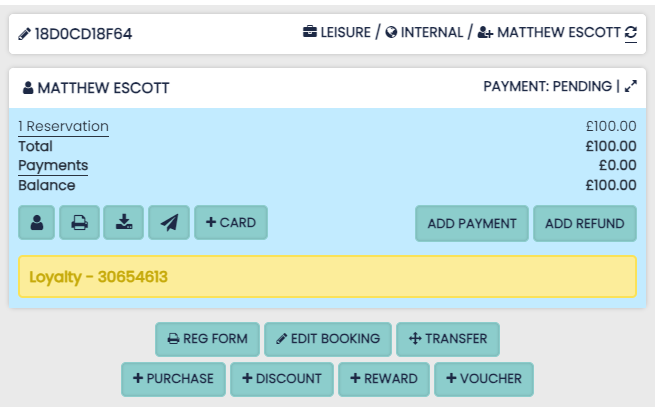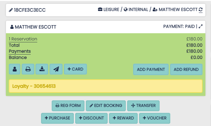 7 View Registration Form, Edit & Add to Booking - here we can make amendments, transfer between group / corporate reservations, add discounts / vouchers or add additional purchases. Also if a guest has filled out a Registration Form this is another place this information will be stored