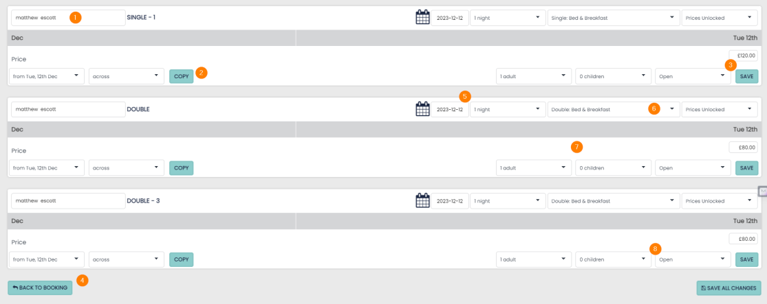 4 Go Back to Booking - takes you back to the booking without saving changes