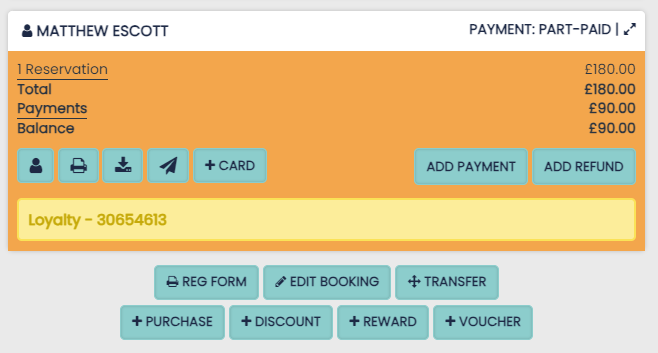 6 Add Payment or Refund - process or record payments and refunds on the booking, or send a pay-by-link request