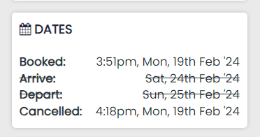 A cancelled booking will be reflected by a line crossing the details within the Booking Hub
