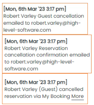 The Booking History updates the various events involved in a cancellation