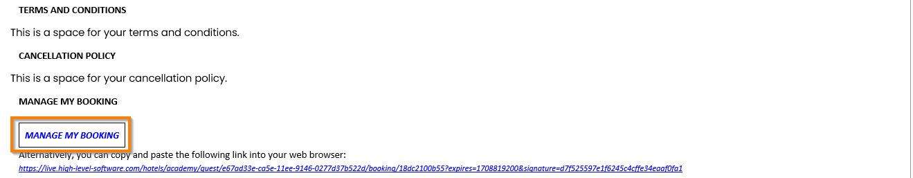 Once a Guest has made a direct booking, dependent on hotel settings set in the PMS, the Guest and/or the hotel will receive a confirmation e-mail with a ‘Manage my Booking’ link