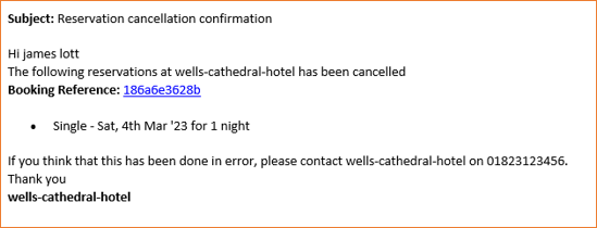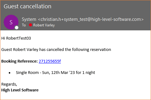 After a guest cancels the booking them self, both the Guest and the hotel will receive a cancellation confirmation e-mail as follows: