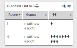 4 Current Guests – all currently checked-in guests will be displayed here alongside their room number