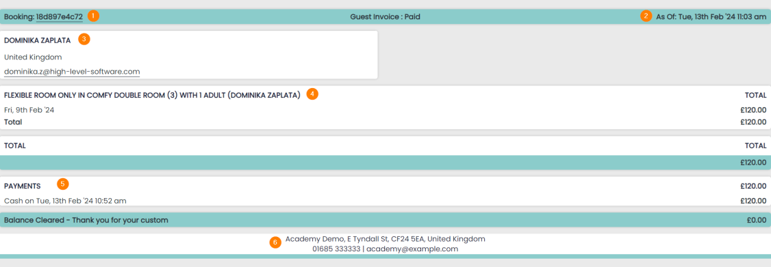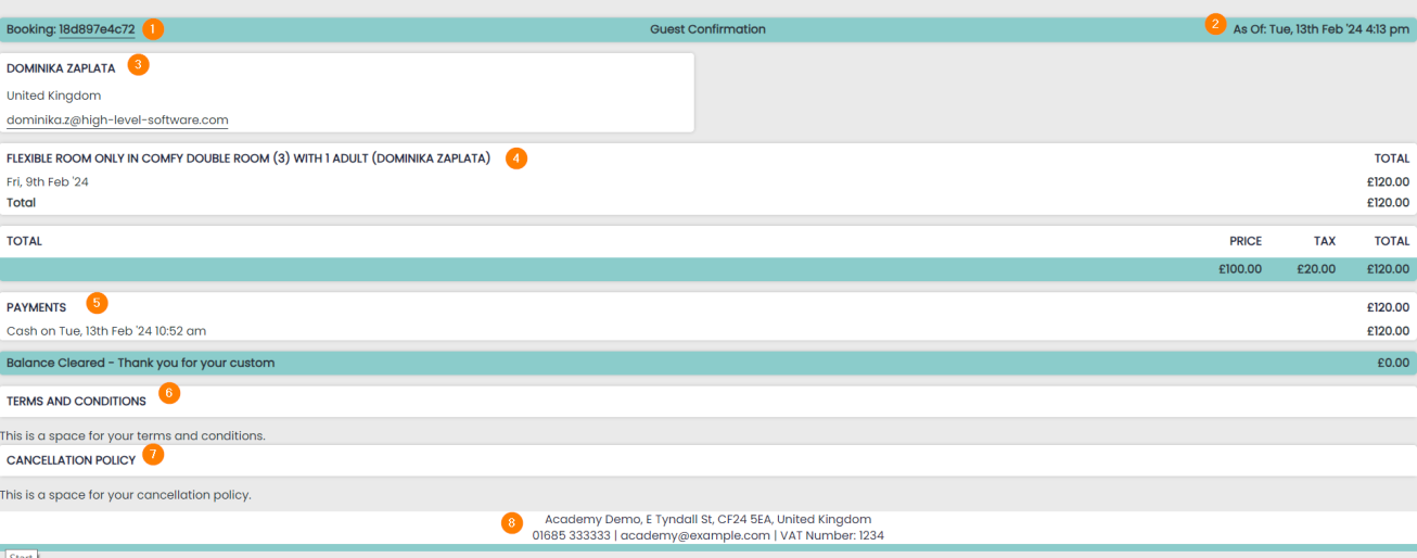 Every booking that is confirmed in the PMS will automatically have an Invoice and Confirmation generated that can be sent to the Guest.