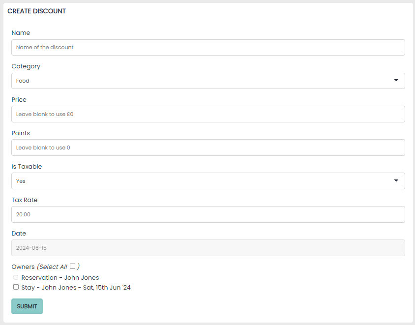 Once you have clicked the ‘+Discount’ you will be required to add an Ad-hoc name that should describe the discount.