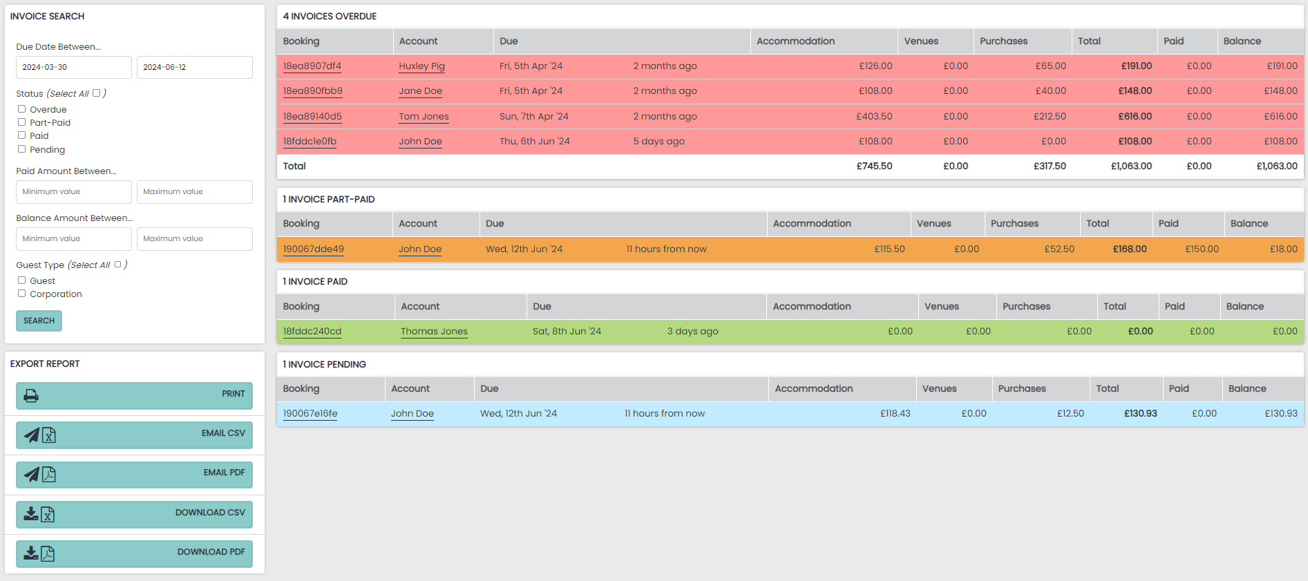 Within the PMS, Invoices are considered the same entities as Bookings. They are identified in the system using the same reference number.