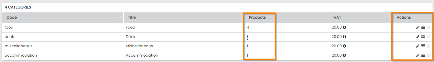 The column Products will display how many live products are assigned to the category. If you select the number you will be redirected to the products page to view and edit.