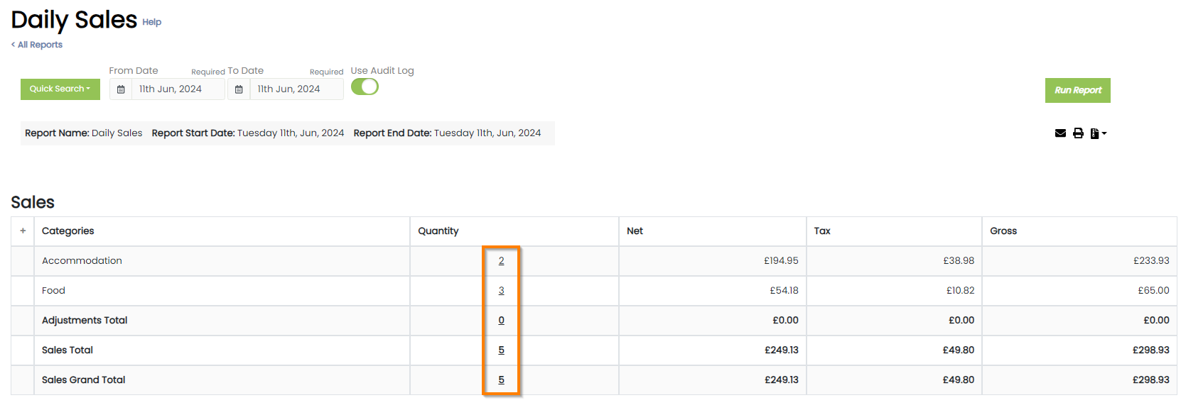 All categories sales are displayed under the Accommodation line.