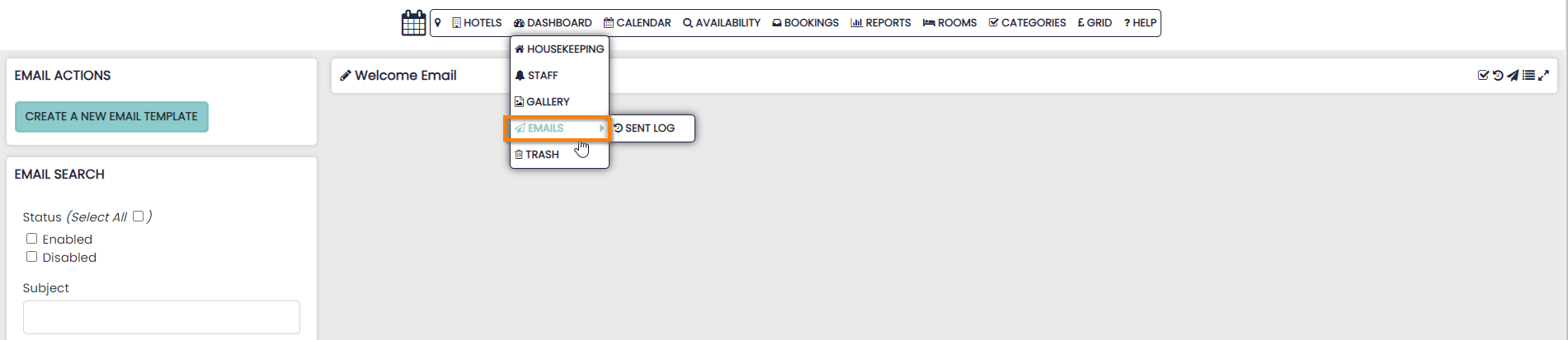 - Selecting the Clock / Arrow icon displays a log history of emails sent