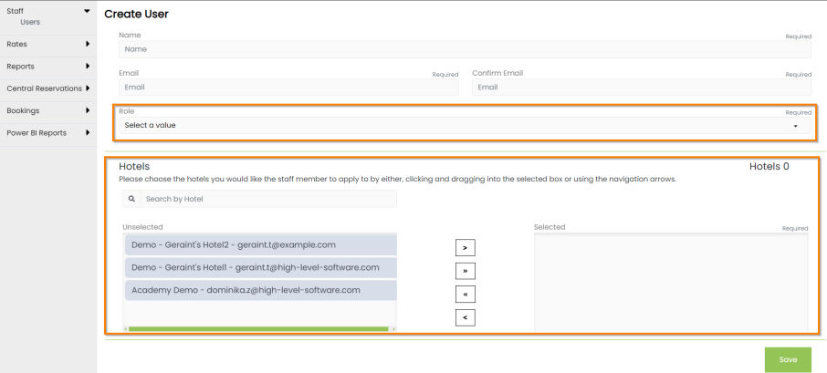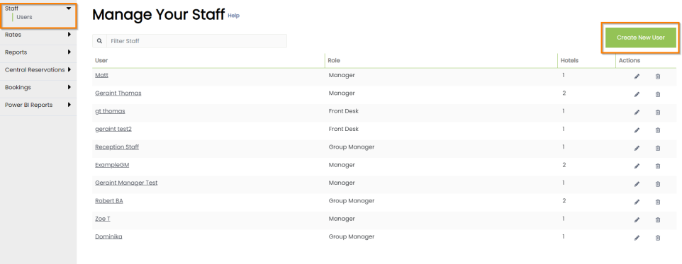 - Staff – staff profiles can be managed centrally and created over multiple hotels