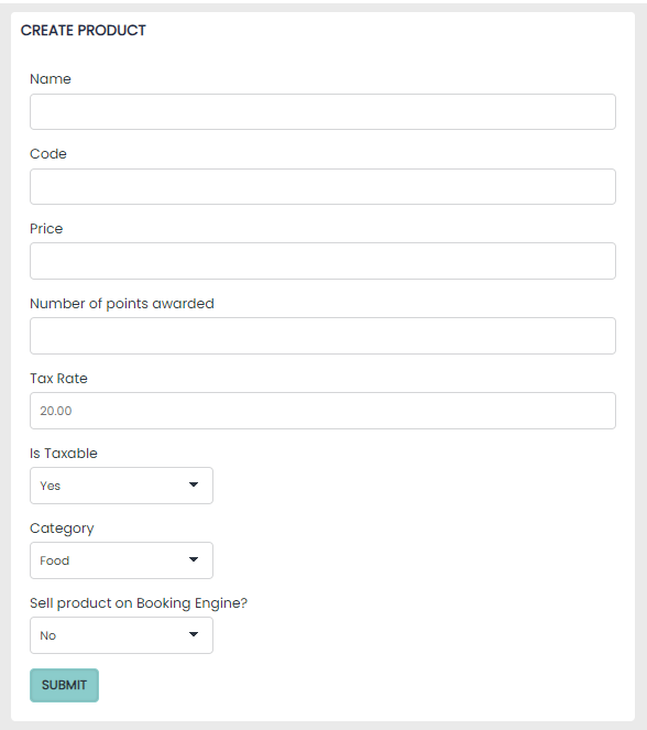 New products are created on by selecting the Create Product button on the left hand side and simply require: