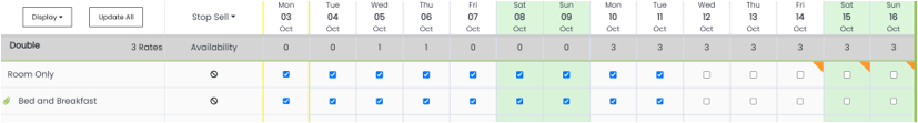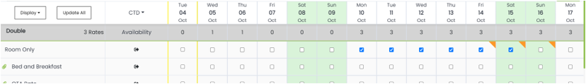 Closed to Arrival and Closed to Departure settings are also either set to On or Off. Closed to Arrival / Departure means a Guest cannot check in / out these days but Guests can stayover. Eg Christmas Day.